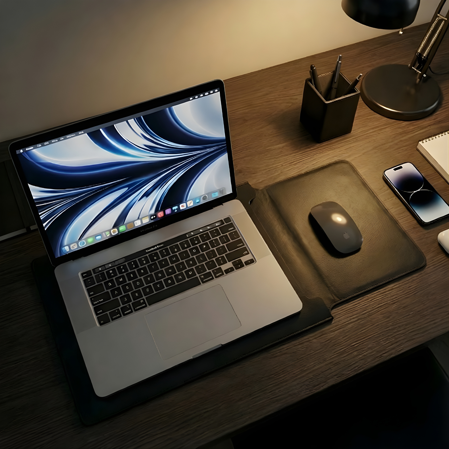 A smooth leather surface that grounds your workspace. Designed to protect your desk while adding warmth, structure, and a refined feel to everyday work.